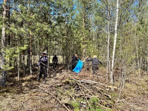 К акции по наведению порядка в государственном лесном фонде сегодня присоединились учащиеся городской школы №1. Общими усилиями ребята убрали 5 кубометров неликвидного хвороста и мусора.