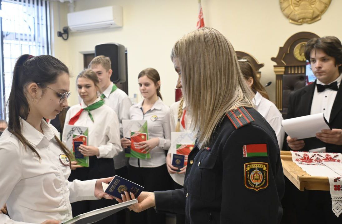 Приветствуя участников торжественного мероприятия, глава депутатского корпуса Наталья Грешилова отметила особую значимость, важность получения главного в жизни документа накануне Дня Конституции Республики Беларусь. Она призвала юношей и девушек гордиться званием гражданина своей страны, приумножать её традиции, быть настоящими патриотами своей Родины. Торжественное вручение паспортов подчёркивает переход во взрослую жизнь, позволяет осознать ответственность перед страной и её законами. Полноправными гражданами страны стали в этот день стали 14-летние школьники, добившиеся лучших результатов в учёбе, спорте, творчестве -Матвей Ивчик, Даниил Марков, Елизавета Александрович, Ксения Проглядова, Дарья Семенцова, Дарья Фесько, Дарья Койпиш, Полина Середа, Дарья Скрипко, Роман Краевич, Елизавета Мельничнок и Вера Шалай. Главный в их жизни документ ребятам торжественно вручила старший инспектор группы по гражданству и миграции РОВД Екатерина Батюк.
