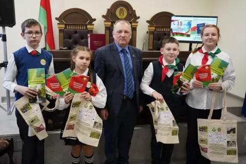 Традиционно в рамках церемонии ребятам вручаются и подарки. Тепло и искренне поздравили ребят и вручили каждому Конституцию Республики Беларусь почётные гости мероприятия – председатель суда Владимир Жолудев, прокурор района Александр Терещенко, заместитель начальника РОВД Павел Антонцев. С напутствием – беречь природу родного края, сохранять её для будущих поколений –обратился начальник природоохранной инспекции Иван Марков, а в подарок вручил сумки-шопперы с фирменным логотипом.