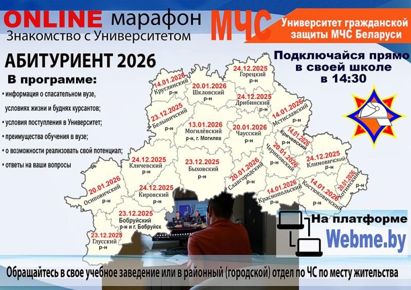 Абитуриент-2026! Стоишь на перепутье, выбирая дело жизни? Мечтаешь о профессии, где каждый день наполнен смыслом, адреналином и возможностью совершать подвиги? Университет гражданской защиты МЧС Республики Беларусь приглашает тебя на онлайн-марафон, который откроет двери в мир мужества, долга и спасения!