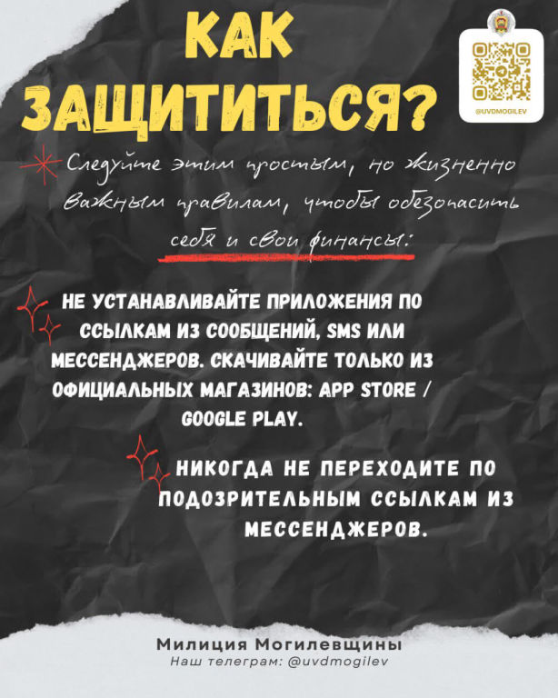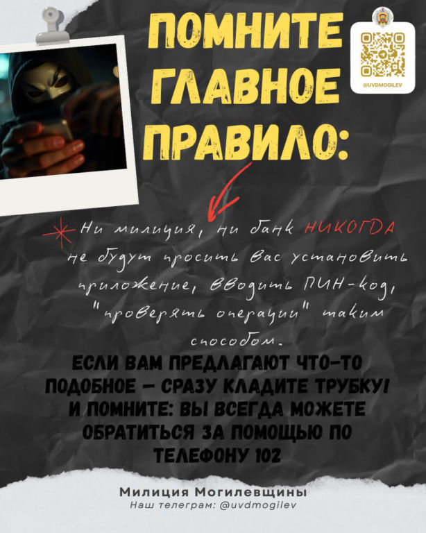 Помните главное правило: ни милиция, ни банк НИКОГДА не будут просить вас: установить приложение, вводить ПИН-код, "проверять операции" таким способом.