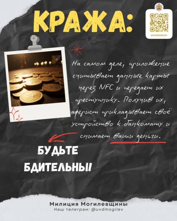 На самом деле, приложение считывает данные карты через NFC и передает их злоумышленнику. Получив данные, мошенник прикладывает своё устройство к банкомату и снимает ваши деньги.