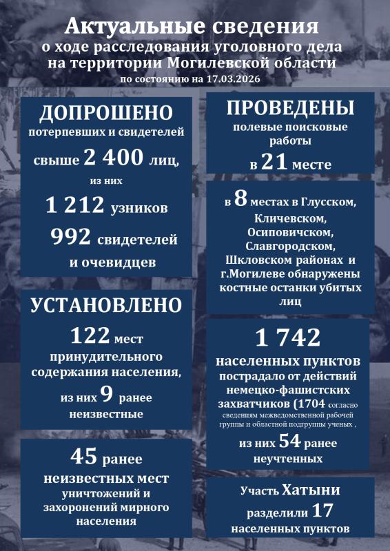 Актуальные сведения о ходе расследования уголовного дела о геноциде белорусского народа в годы Великой Отечественной войны и послевоенный период на территории Могилевской области